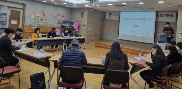 [금요저널] 수원시는 18일 팔달구 수원시장기요양지원센터에서 ‘고령친화도시 모니터단 역량 강화 교육 및 간담회’를 열고 효율적인 고령친화도시 조성 방안 등을 모색했다.