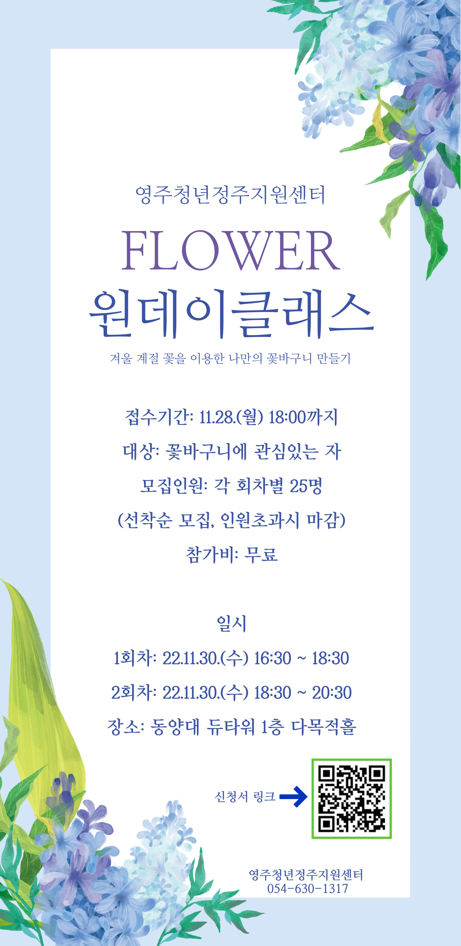영주청년정주지원센터가 21일부터 ‘내일의 내 일(JOB)’과 ‘플라워 원데이 클래스’ 프로그램의 참가자를 선착순 모집한다.