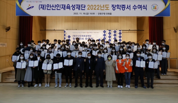 단원구청 단원홀에서 진행된 수여식은 김봉식 안산인재육성재단 대표이사와 장학생 100여명 및 가족 등이 참석한 가운데 진행됐다.
