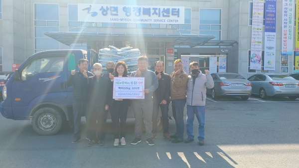 [금요저널] 대풍벼위탁영농조합법인은 11월 18일 상면행정복지센터에 백미 10kg 100포를 기탁했다.