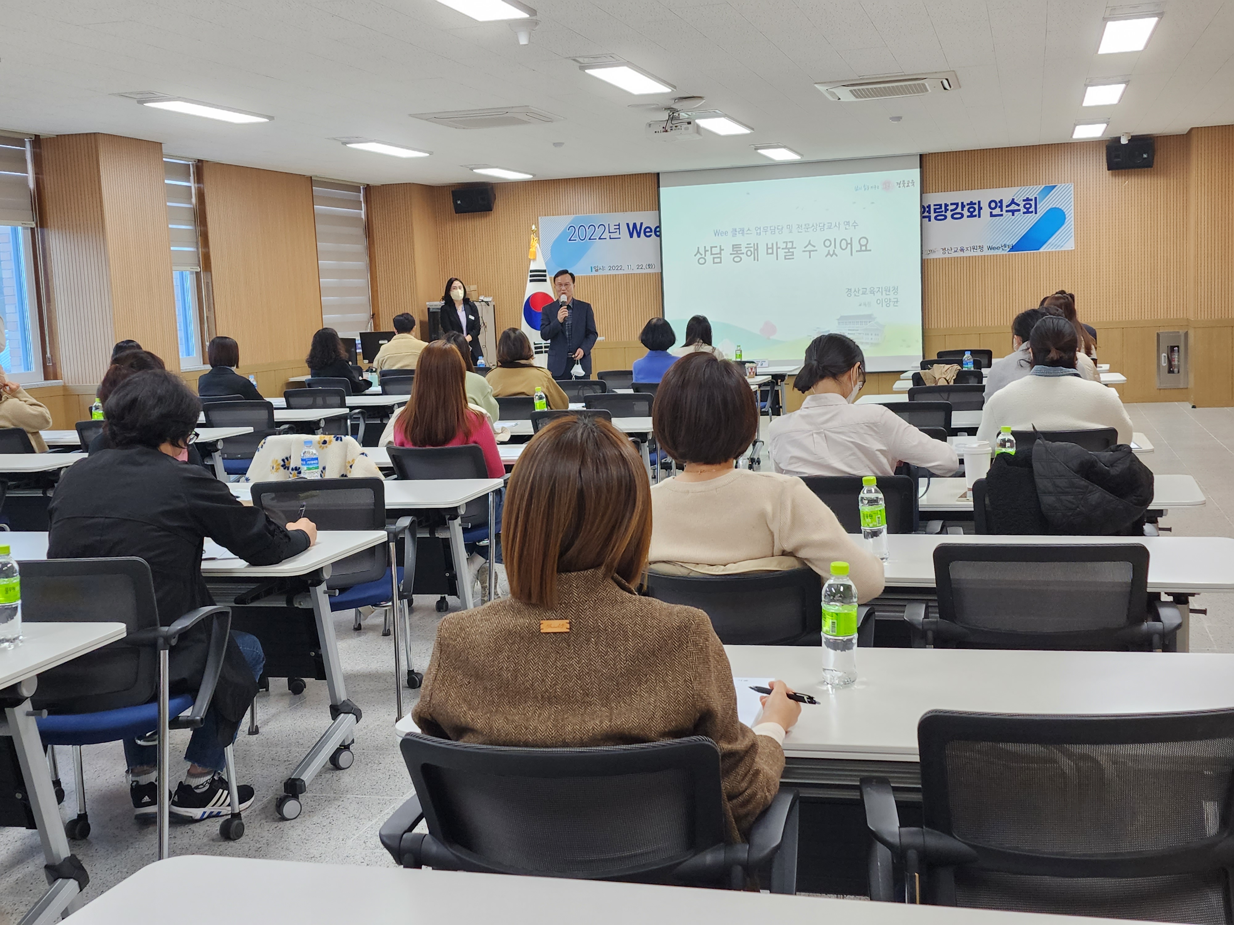 □ 경산교육지원청(교육장 이양균) Wee센터는 2022년 11월 22일(화) 10시 00부터 16시 30분 까지 경산교육지원청 학생교육지원관 201호에서 경산 관내 초‧중‧고등학교 Wee클래스 업무 담당자와 Wee센터 전문상담교사 및 전문상담인력를 대상으로 역량강화 연수회를 개최하였다.