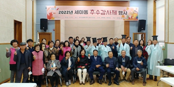행사를 주관한 이인기 통장단협의회 회장은 “세마동의 추수감사제는 자연부락의 전통과 역사, 조상 숭배의 정신을 계승하고 있으며 정통성을 갖고 지속적으로 제례를 추진하는 것은 세마동만의 지역축제이자 소통의 장이라며 이번 행사의 큰 자부심을 느끼고 있다”고 말했다.