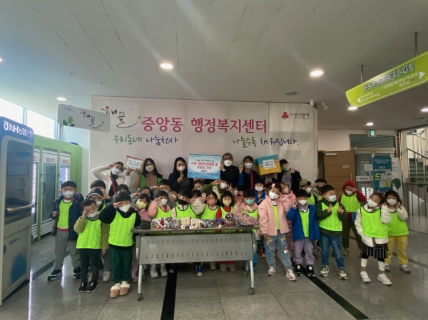 문정희 어린이집 원장은 “어린이집의 선생님, 원아, 학부모 모두의 마음과 정성을 모은 것으로 원아들이 나눔의 기쁨을 함께 느끼면 좋을 것 같아 중앙동 행정복지센터에 방문해 기탁을 하게 됐다”며 “관내 어려운 분들에게 의미있게 쓰였으면 좋겠다”고 전했다.