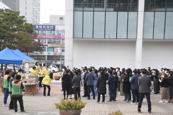 이날 지진 대피 훈련에는 청사 내 전 직원, 지역자율방재단, 시설 이용자 등 약 1,000명이 참여했다.
