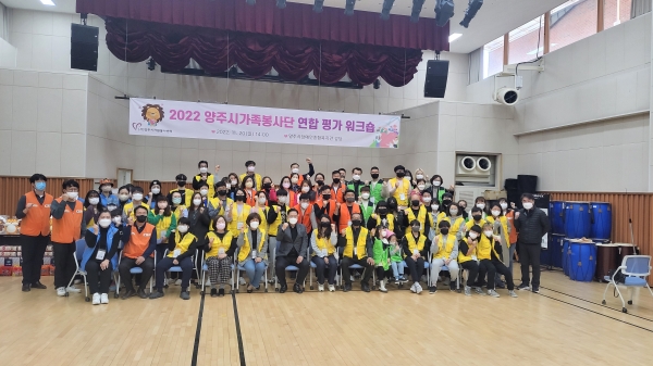 [금요저널] 양주시자원봉사센터는 지난 20일 양주시장애인종합족지관에서 가족봉사단 연합 30가족 70여명이 참여한 가운데 ‘2022 양주시가족봉사단 연합 평가 워크숍’을 개최했다.