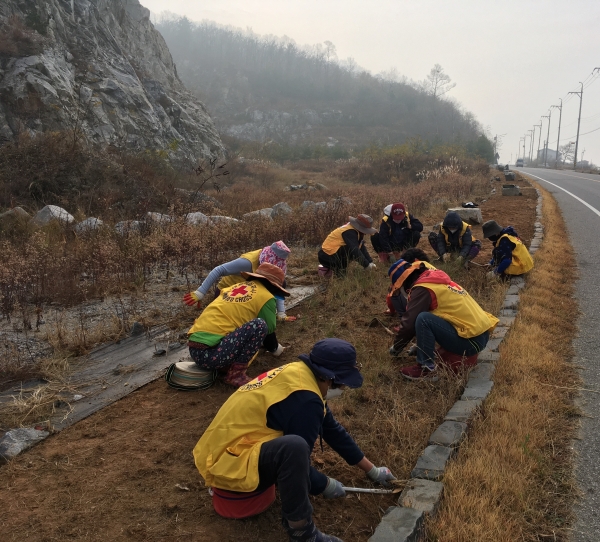 [금요저널] 강화군 양도면 적십자부녀봉사회는 지난 22일 건평리 해안도로의 가로화단을 정비했다.