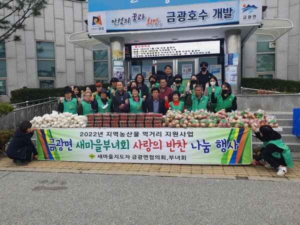 한편 금광면새마을부녀회에서 추진한 ‘사랑의 반찬 나눔 행사’는 안성시의 지역농산물 먹거리 지원사업을 통해 사업비를 지원받았으며 금광면새마을부녀회는 이번 행사를 포함해 올해 총 4번의 ‘사랑의 반찬 나눔 행사’를 추진했다.