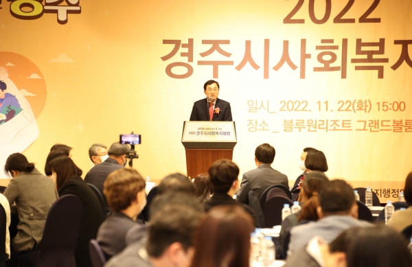[금요저널] 경주시가 사회복지에 대한 시민의 이해를 증진시키고 관련 종사자에 대한 활동을 장려하고자 ‘2022 경주시 사회복지대회’를 22일 블루원리조트에서 개최했다.