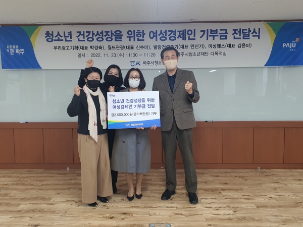 기부를 실천한 여성경제인들은 “도움이 필요한 파주시 청소년들이 지역사회의 지원을 받아 건강하게 성장하길 기대하고 앞으로도 나눔에 힘쓰겠다”고 말했다.