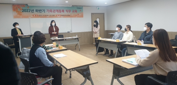 교육은 최근 국제 가족관계등록업무 증가로 예전에 보지 못한 특이 민원들이 발생해 직원들의 고충이 많아져 사례별 교육과 수준별 교육으로 추진하게 됐다.