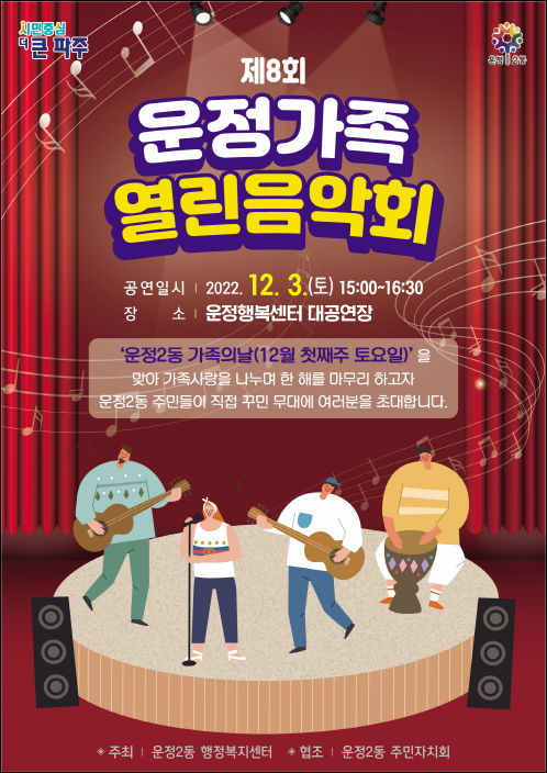 [금요저널] 제8회 운정가족 열린음악회가 12월 3일 운정행복센터 대공연장에서 개최된다.