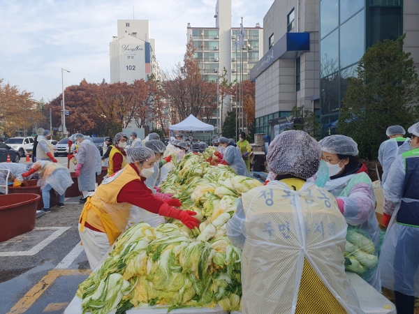 이날 행사에는 60여명의 정왕3동 주민자치회 등 유관단체원과 자원봉사자 등이 참여해 김장김치 700여 포기를 담갔다.