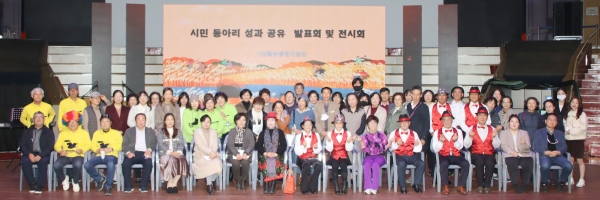 [금요저널] 지난해 더불어 사는 풍요로운 안성을 만들기 위한 공동체 활성화 사업으로 시민들의 관심과 사랑을 받았던 시민동아리 사업이 안성시시민활동통합지원단마을공동체지원센터의 주관으로 올해도 4월부터 10월까지 진행된 가운데, 성과공유를 위한 발표회 및 전시회가 남사당 공연장에서 지난 23일 두 번째로 열렸다.