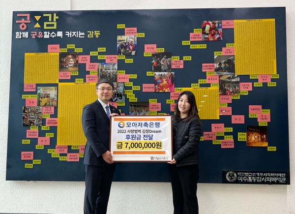최근 물가상승과 공공요금 인상 등 국내 경제상황이 어려운 상황에서도 모아저축은행에서는 작년에 이어 올해에도 후원금을 전달하며 지역사회나눔문화 확산에 앞장서고 있다.