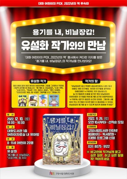[금요저널] 고양특례시 대화도서관이 오는 12월 10일 어린이자료실에서 ‘용기를 내, 비닐장갑’의 저자 유설화 작가와의 만남을 진행한다.