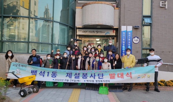[금요저널] 고양특례시 일산동구 백석1동 행정복지센터에서는 11월 24일 통장 협의회원 및 직능단체로 구성된 제설 봉사단 발대식을 개최했다.
