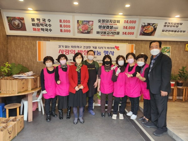 [금요저널] 부평구 일신동 주민자치회는 지난 22일 일신시장에 위치한 삼대전통막국수숯불갈비에서 ‘사랑의 밥상’ 나눔 행사를 진행했다.