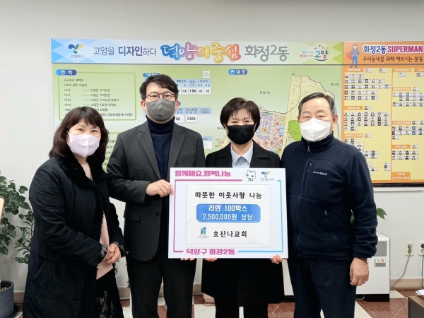 호산나 교회, 고양특례시 화정2동에 사랑의 라면 후원