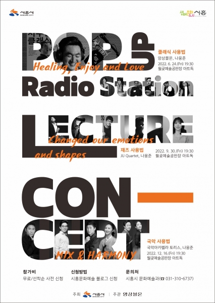 [금요저널] 시흥시는 시민들의 일상 속 문화 경험을 확대하고 예술적 감각을 공유하는 문화공감학교‘Pop-Up Radio Station’렉쳐콘서트를 월곶예술공판장 아트독에서 다음달 16일 진행한다.