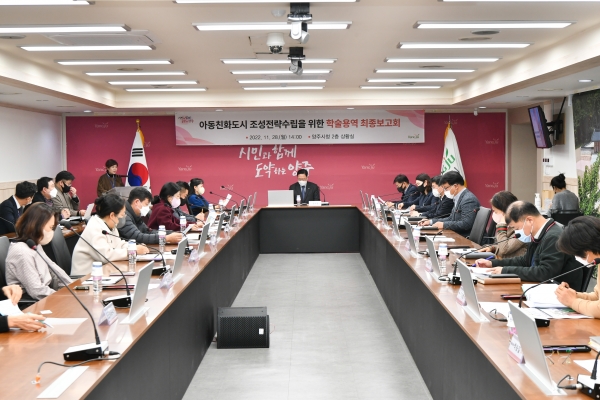 강수현 양주시장은 “이번 학술용역을 통해 수립한 4개년 추진계획이 아동이 건강하고 행복하게 살 수 있는 성장환경을 만들어 갈 것을 기대한다”며 각 부서에서의 적극적인 협조와 양질의 사업추진을 당부했다.