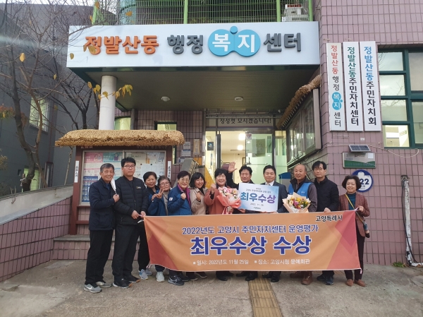 [금요저널] 고양특례시 일산동구 정발산동 주민자치회가 11월 25일 고양시청 문예회관에서 열린 ‘2022년 고양시 주민자치센터 운영평가’에서 영예의 ‘최우수상’을 수상했다.