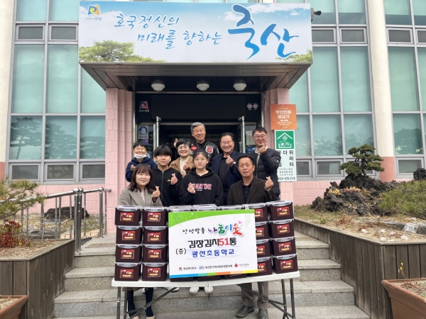 죽산면, 광선초로부터 불우이웃 돕기 김치 51통 전달받아