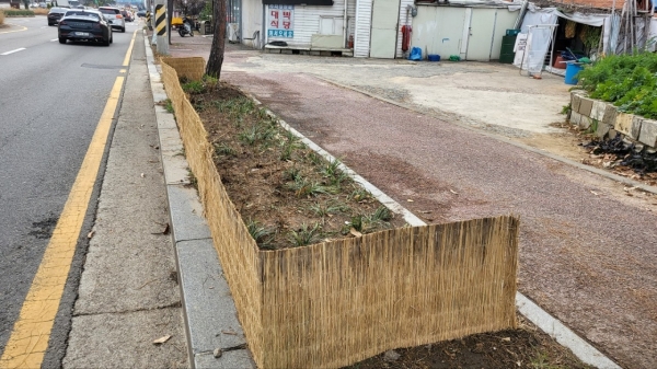 [금요저널] 수원시는 영통구 웰빙타운로 등 가로수 띠녹지 24개소에 제설제 차단막을 설치했다.