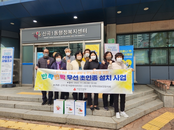 신곡1동 마을복지추진단은 동 지역사회보장협의체 위원과 통장들로 구성되어 있으며 어르신들의 이웃 간 소통을 위해 무선 초인종이 필요한 가구를 직접 발굴해 사회복지공동모금회 기탁금을 지원받아 각 세대를 방문해 설치했다.