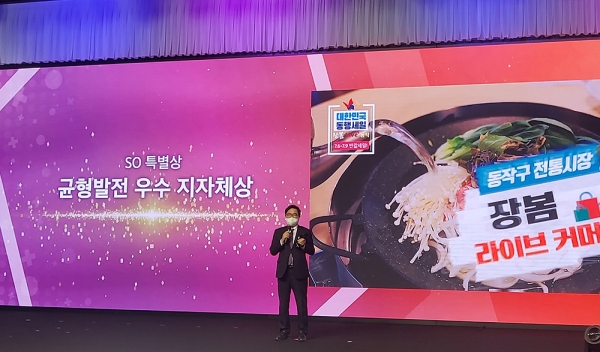 ‘동작구 전통시장 라이브커머스’는 케이블TV HCN동작과 협력해 지역발전 제고에 기여한 점을 높이 평가받아 SO분야 우수 지자체 부문에서 특별상을 받았다.