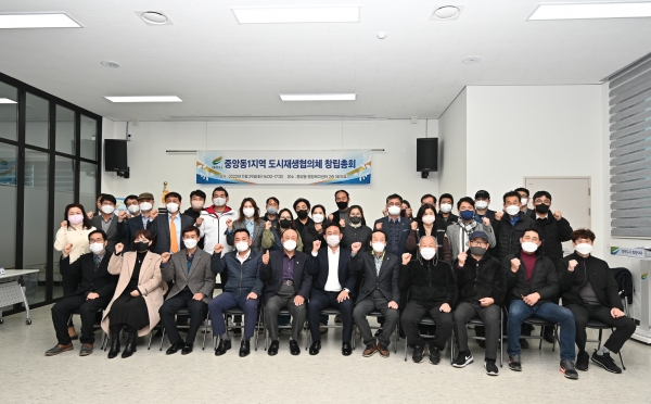 이날 행사는 창립총회 기념식을 진행한 후, 본 회의에서 중앙동1지역 도시재생협의체 정관을 승인하고 도시재생협의체 임원으로 김부열 대표, 최현숙 부대표, 김동호·한호동 감사를 선출했다.