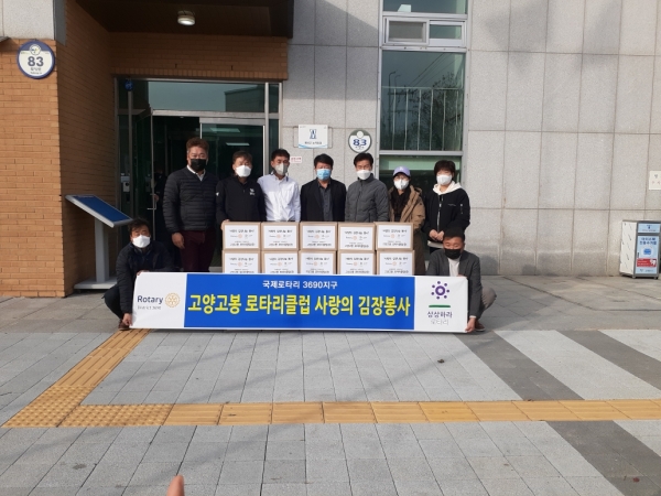 [금요저널] 고양특례시 능곡동 행정복지센터는 지난 29일 고양고봉로타리클럽에서 독거노인, 장애인 가구 등을 위한 김장김치 20박스를 후원받아 취약계층에게 전달했다고 밝혔다.