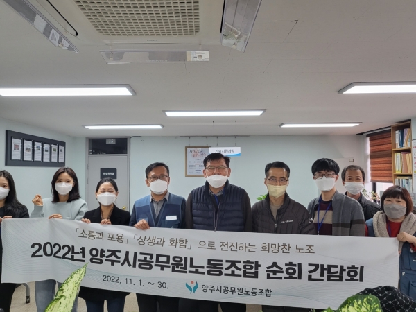 [금요저널] 양주시공무원노동조합은 지난 11월 2일부터 30일까지 노조 임원진과 함께 본청과 직속기관, 11개 읍면동 조합원과 후원회원을 대상으로 개최한 순회간담회를 성황리에 마무리했다.