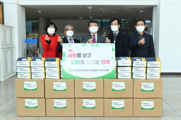한국장애인농축산기술협회 구리시지회는 2005년도에 최초 설립됐으며 현재 등록된 회원수는 80여명으로 평소에 관내 어려운 이웃을 위해 사랑의 후원물품을 지원해오며 구리시 내 나눔문화 확산에 기여하고 있다.