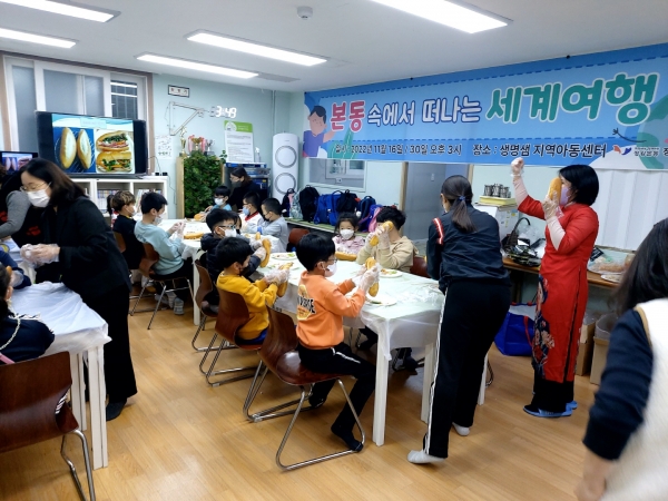 [금요저널] 정왕본동 주민자치회는 지난 11월 16일과 30일 두 차례에 걸쳐 ‘본동 속에서 떠나는 세계여행’ 프로그램을 생명샘 지역아동센터에서 개최했다.