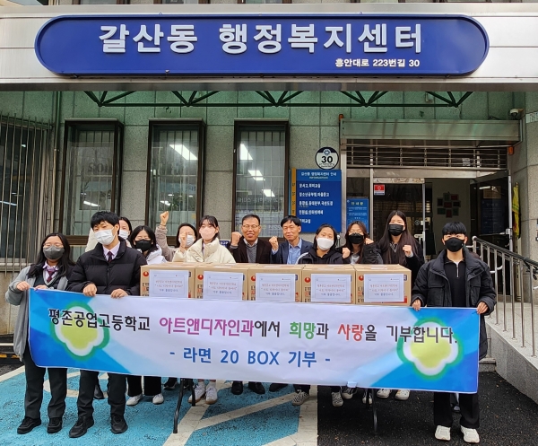 목소리의 주인공은 안양시 갈산동에 위치한 평촌공업고등학교의 선생님과 학생들. 이들은 다가오는 겨울 어려운 이웃에게 전달해달라며 70여만원 상당의 라면 20박스를 지역사회보장협의체에 전달했다.