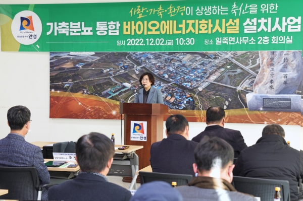 가축분뇨 통합 바이오에너지화 시설은 축사 밀집 지역 가축분뇨의 적정 처리 및 축산냄새 저감을 위해 가축분뇨를 활용한 신재생에너지를 생산, 확대 보급해 안성시 탄소중립 실현 기반을 마련하는 한편 친환경에너지타운 조성사업 추진을 통해 생산된 신재생에너지의 폐열을 활용해 난방 공급, 퇴비 공급 등 다양한 방법으로 지역주민에게 환원할 수 있어 마을과 축산이 상생할 수 있는 대안으로 주목받고 있다.