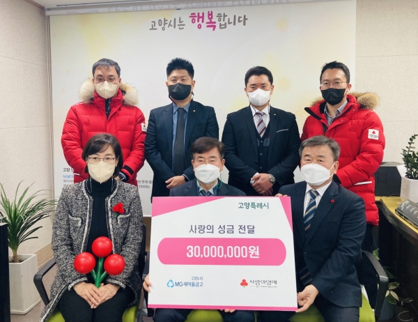 [금요저널] 고양특례시는 고양누리새마을금고에서 사랑의 성금 3천만원을 기부했다고 5일 말했다.