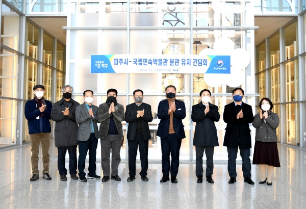김경일 시장은 간담회에서 “수도권 주민들의 민속문화에 대한 욕구를 충족시키고 향후 남과 북의 민속문화 교류를 위한 허브로서 파주가 분관 건립의 최적지라고 확신한다”며 “분관 유치를 통해 문화도시 파주의 브랜드 가치를 더 높이고 주변 문화관광 자원 연계로 수도권 관광 활성화에 기여할 수 있을 것”이라고 말했다.