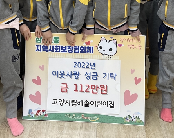 [금요저널] 고양특례시 삼송2동 행정복지센터는 지난 6일 고양시립해솔어린이집 직원 및 원아가 어려운 이웃을 위해 모은 성금 112만원을 기탁했다고 밝혔다.