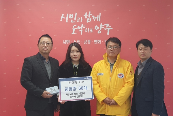 양주시 회천4동, 옥정14통장 부부 헌혈증서 60매 기부