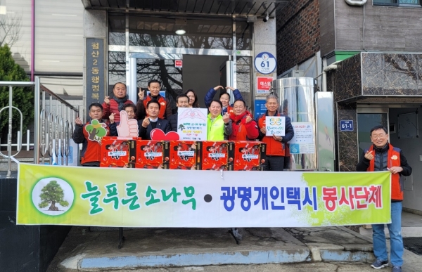 ‘늘푸른 소나무 봉사단’은 광명에서 개인택시를 운영하는 운전자들이 자발적으로 조직한 자원봉사단체로 광명시 관내 노인, 장애인 등 교통약자의 이동권 및 접근권 향상을 위해 2012년 창단됐다.