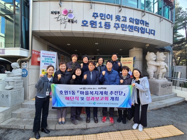[금요저널] 의정부시 호원1동주민센터는 12월 7일 호원1동 마을복지계획에 대한 사업의 성과를 공유하고 추진단의 임기 종료에 따른 그간의 노고를 격려하기 위해 해단식 및 성과보고회를 개최했다.