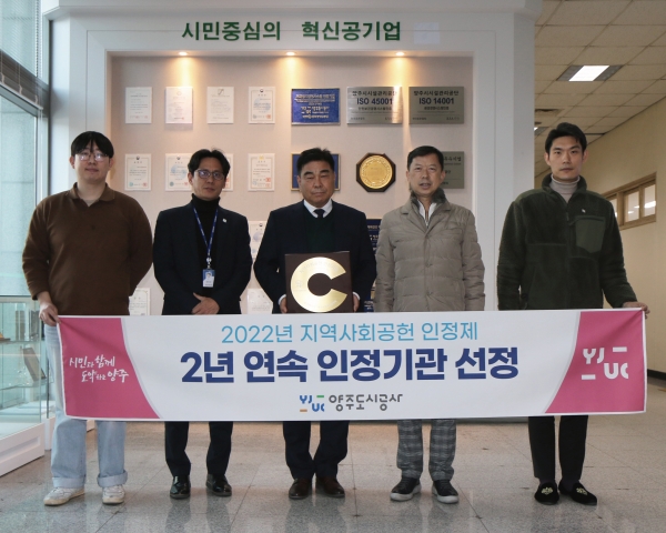 [금요저널] 양주도시공사가 2021년에 이어 2년 연속 ‘지역사회공헌 인정제’인정기관으로 선정됐다고 8일 밝혔다.
