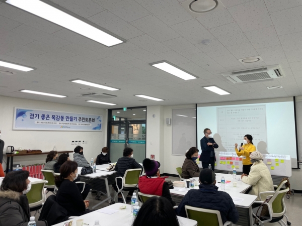 이날 토론회에는 걷기지도자 및 주민 주도 자율걷기동아리 회원, 걷기챌린지·신체활동 프로그램 참여자 등 지역주민 26명이 참여해 ‘걷기 활성화를 위한 방법’, ‘걷기 장애요인’ 등 걷기 좋은 목감동 만들기에 대한 다양한 의견을 공유하고 소통하는 의미 있는 시간을 가졌다.