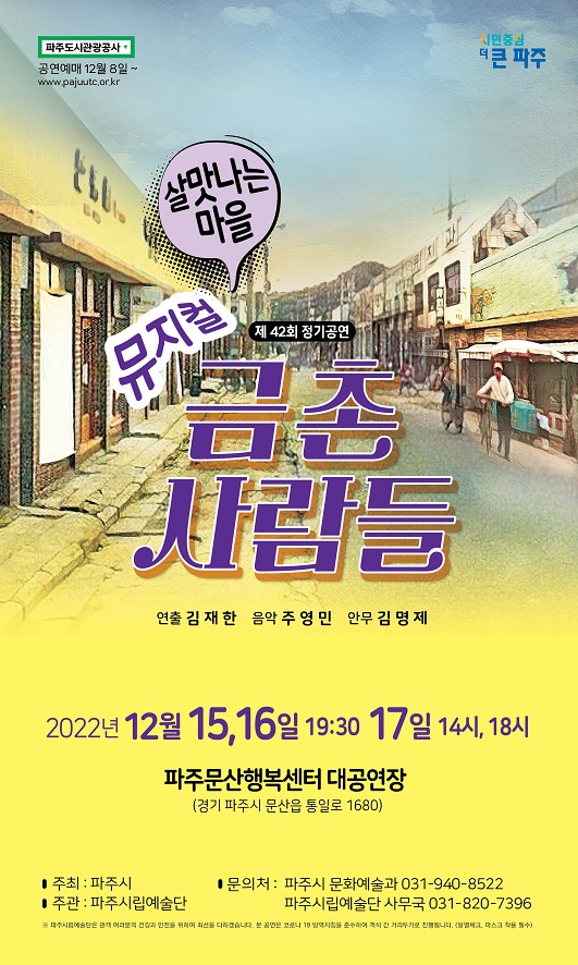 파주시립예술단 연말 정기공연 개최.뮤지컬‘금촌 사람들’