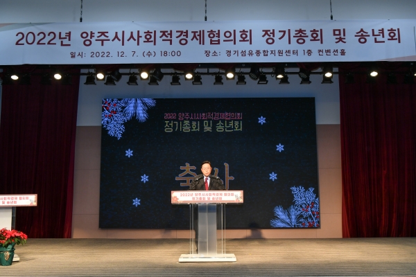 [금요저널] 양주시 사회적경제협의회는 지난 7일 경기섬유종합지원센터에서 2022년 양주시사회적경제협의회 정기총회·사회공헌사업을 개최했다.