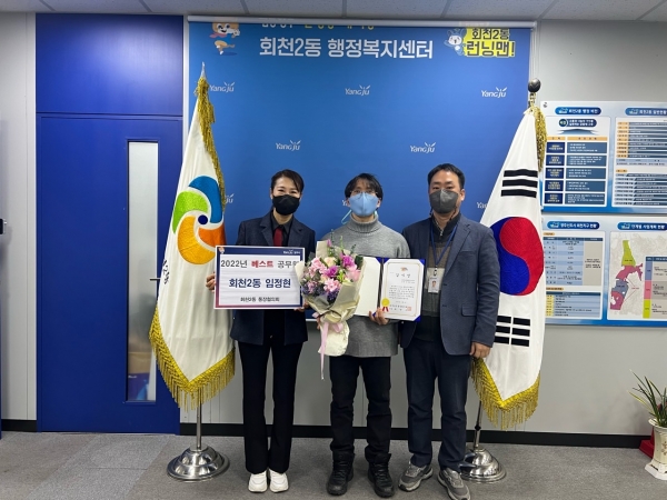 이번에 선정된 직원은 회천2동 행정복지센터에서 복합청사 관리 및 청소·환경 업무를 담당하는 임정현 주무관이다.