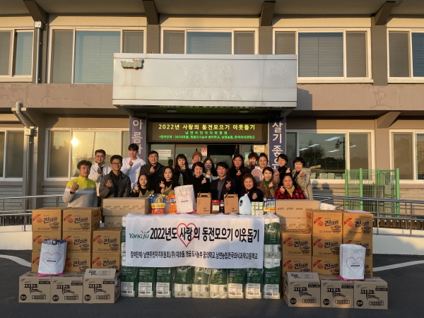 남면 주민자치위원회에서 주관하고 여러 단체의 후원을 받아 진행된 이번 행사는 남면 행정복지센터와 주민자치센터, 농협에 설치했던 동전모금함과 대호툴, 한국외국과학고에서 받은 기부금으로 세제, 라면 등 생필품을 마련했다.