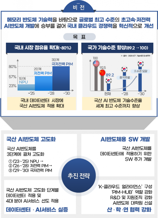 인공지능반도체 고도화 단계별로 이를 데이터센터에 적용하고 인터넷기반자원공유 기반 인공지능서비스까지 제공하는 실증사업을 함께 추진한다.