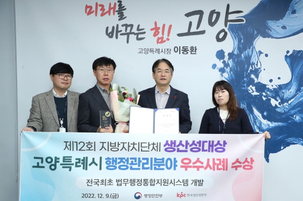 고양시는 전국 최초로 소송·자문·법제·협약 업무를 전산화하고 새올 행정시스템, 법제처, 대법원 등과 연계한 ‘법무행정통합지원시스템’을 개발한 것이 우수한 평가를 받았다.